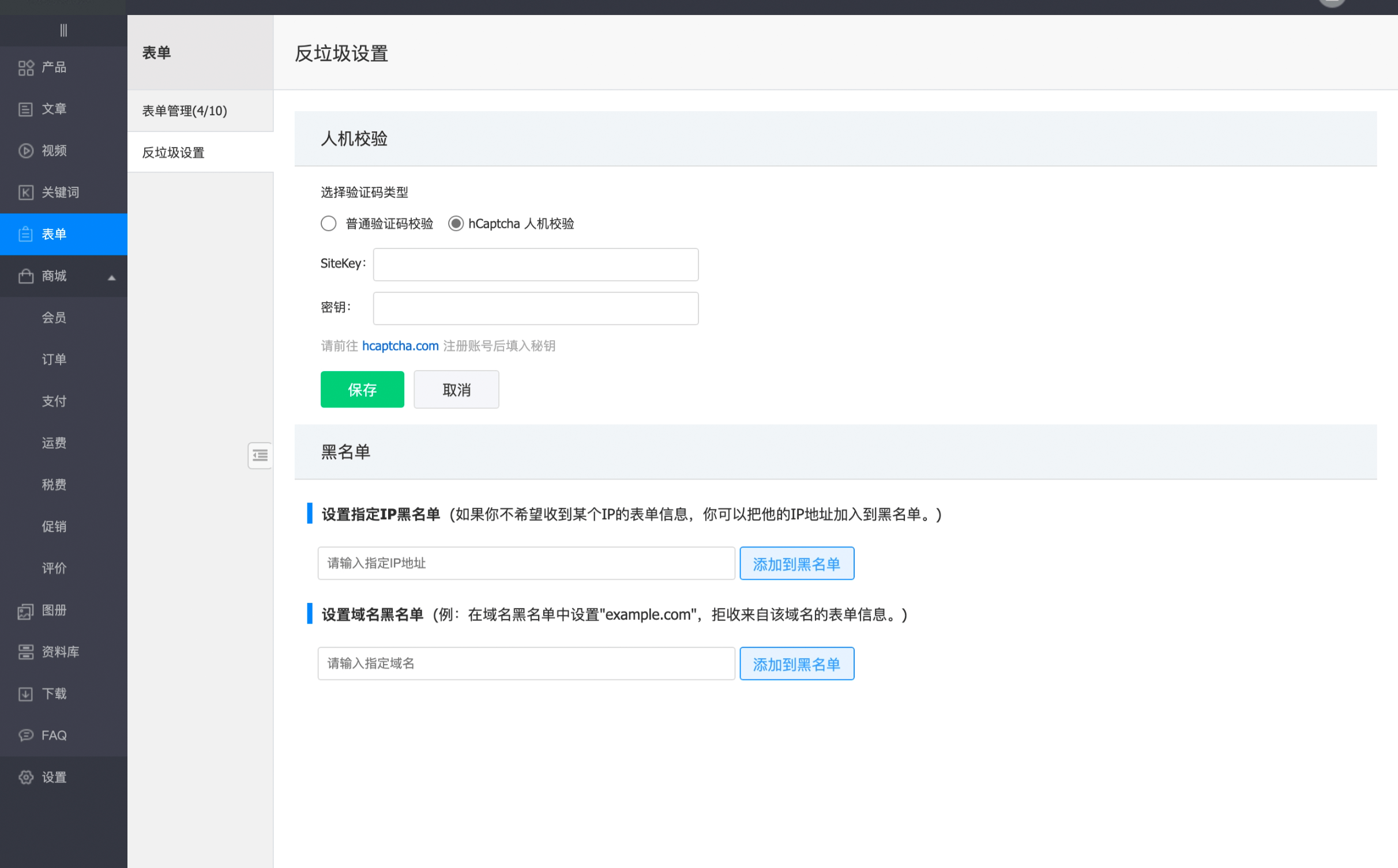 2、表单反垃圾功能升级,新增第三方人机校验服务hCaptcha;