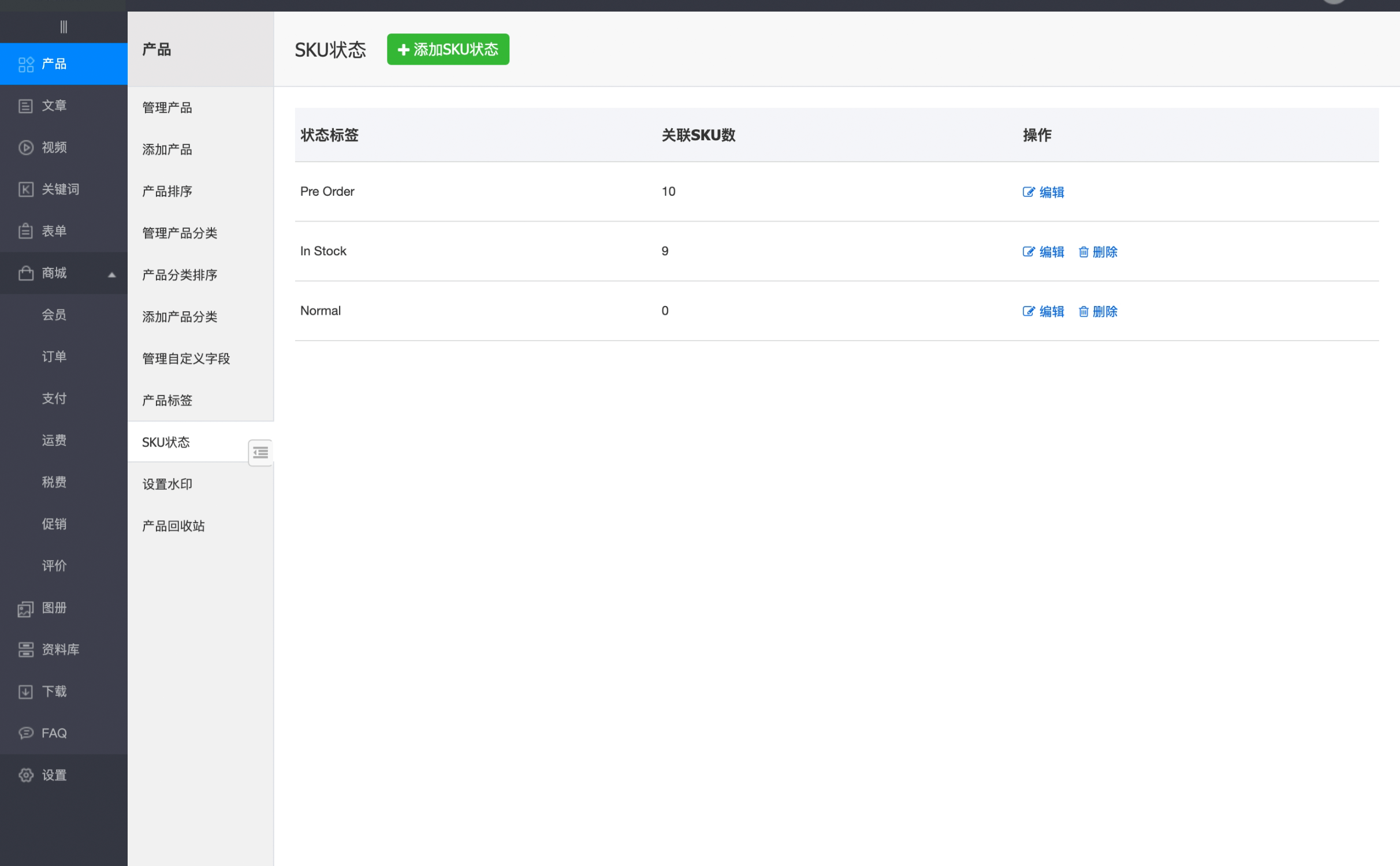 1、产品SKU支持单独设置SKU状态;