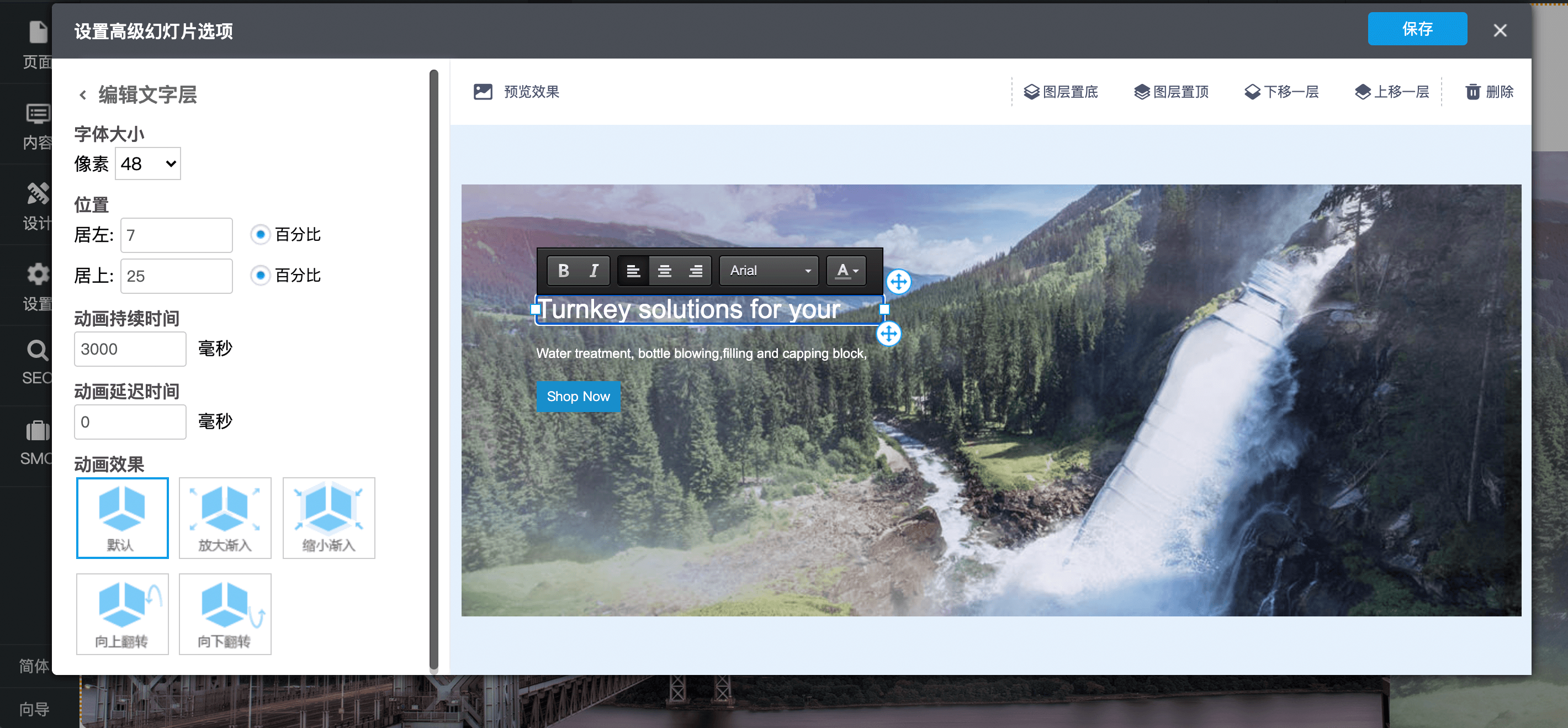 【应用场景】新版高级幻灯片组件突破常规采用预览编辑模式,很方便添加图片层、文字层、按钮层,用户可以一边进行幻灯片元素样式编辑,一边实时查看最终展示效果,操作更易用、交互体验更流畅。