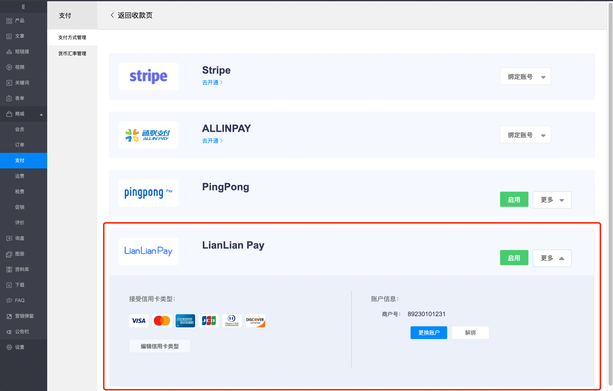 2、支付系统2.0新增支持连连支付(LianLianPay);