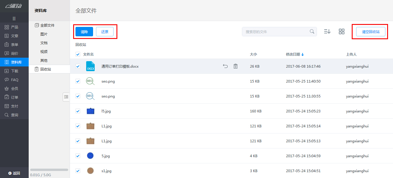 3)新增“回收站”功能,删除的图片会先到回收站中,当图片确实不再使用可以从回收站中彻底清除,就不再占用资料库空间,释放资源给其他更重要的资料存储;